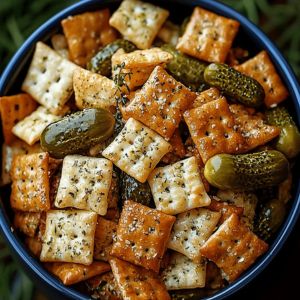Tangy, savory, and downright addictive, this pickle-flavored Chex mix creates a snacking experience that everyone will love and nobody can resist. Recipients will find themselves reaching into the container repeatedly, asking for seconds before admitting they’ve finished the entire batch.