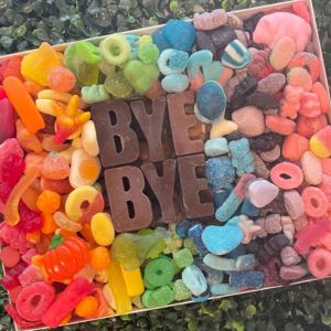 The chocolate letters spelling out “Bye Bye” will make her smile every time she sees them, and the rainbow gummies add that sweet (and slightly sassy) touch.