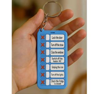 This checklist keychain will provide a simple way to double check everyday tasks before leaving the house. Whether it’s locking the door, turning off the stove, or bringing important items along, the visual checklist will help ease worry and prevent second guessing.