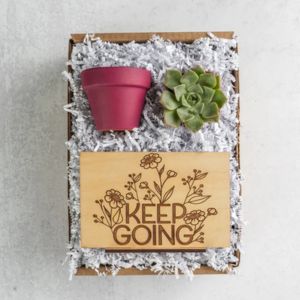 A small succulent gift, that includes a small wooden note, is about as low-maintenance as it gets, which is kind of the point.