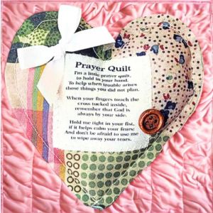 This mini prayer quilt comes with a cross inside. She can keep it in her purse or jacket pocket so it is easily accessible.
